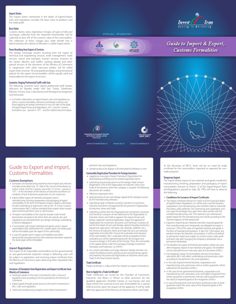 Guide To Import Export Customs Formalities Iran Invest Pdf Exports Tariff